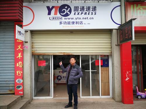 (图注:嫌疑人在自己开设的物流配送点前)